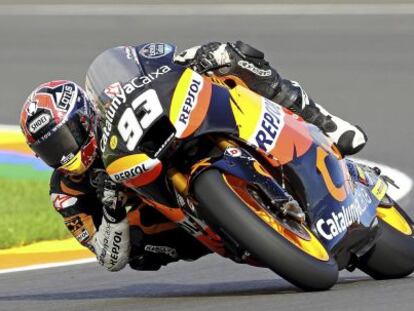 El piloto español gana una carrera que empezó desde el ‘pit lane’, donde cambió los neumáticos de agua por unos lisos justo antes de la salida Lorenzo se cae cuando rodaba primero