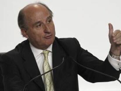 El ministro de Justicia afirma que el soberanismo de Mas perjudica la recuperación Pitada de un centenar de trabajadores ante el hotel donde interviene el miembro del Gobierno