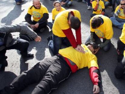 Un centenar de trabajadores del servicio sanitario de urgencias se concentra ante la Concejalía de Seguridad y protagonizan una sentada y una pitada