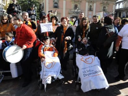 La Marcha por la discapacidad se manifiesta ante la Generalitar para exigir que pague la deuda Familiares, empleados y usuarios exigen a Fabra que no recorte las ayudas en 15 millones La patronal de la dependencia, Aerte, exigirá a los usuarios que adelanten el pago de facturas