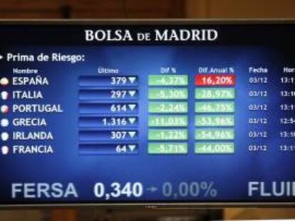 La prima de riesgo española baja a 383 puntos básicos en la apertura