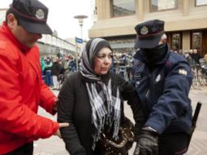 Una mujer, herida por un petardo en las protestas ante el Parlamento Vasco
