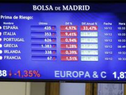 La prima de riesgo de España baja a 402 puntos básicos en la apertura