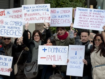 Centenares de empleados en la plaza Los Pinazo y la explanada de Nuevo Centro en Valencia Trabajadores de El Corte Inglés protestan contra la eliminación del plus por trabajar en festivo