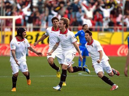 Rakitic, desde 40 metros, y Negredo, de tacón, dan el triunfo al Sevilla (2-1) ante el abnegado despliegue del Rayo