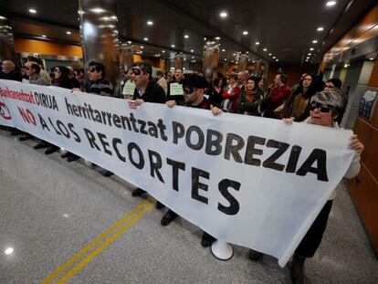 La protesta se ha producido cuando Bilbao, Garitano y De Andrés llegaban, junto a la presidenta de Eudel, a la reunión del Consejo Vasco de Finanzas