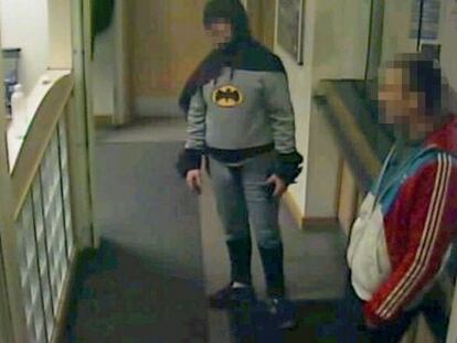 La policía de la localidad inglesa de Bradford (Reino Unido) ofrece imágenes del hombre disfrazado como el superhéroe que detuvo al sospechoso