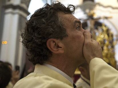 El actor, mayordomo en el desfile de María Santísima de Lágrimas y Favores, cede el primer toque de campana a la baronesa Carmen Thyssen-Bornemisza