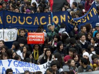 Los jóvenes muestran su fuerza en una de las marchas más masivas desde 1990 Bachelet, candidata del centroizquierda, propone una reforma tributaria para financiar la educación pública Los estudiantes reafirman su independencia de la clase política y los postulantes a La Moneda El Senado decidirá la suspensión del ministro de Educación de Sebastián Piñera