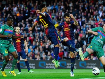 El gol de Fábregas, la parada de Navas ante el penalti de Villa, la lucha del Levante... Las mejores imágenes del encuentro en el Camp Nou