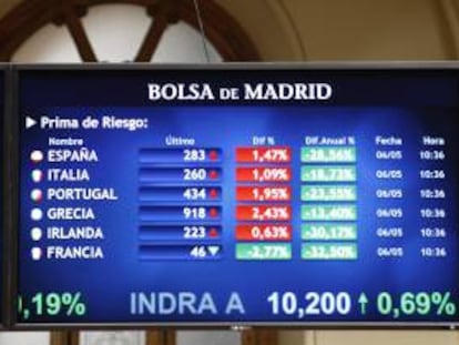 La prima de riesgo cae a 282 puntos, pendiente de la subasta del Tesoro