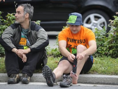 El secretario general de ELA recibe a la comitiva que llegó a pie desde la planta vizcaína