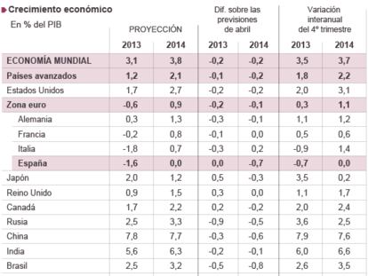 España se quedará descolgada entre las grandes economías con un 0,0% en 2014 La rebaja de la previsión española para 2014 es la mayor de los países desarrollados
