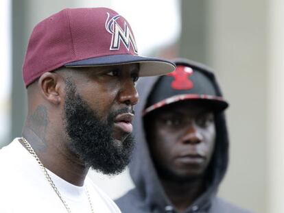 Tracy Martin, padre de Trayvon habla ante los cientos de manifestantes reunidos este sábado frente a la Corte Federal de Miami