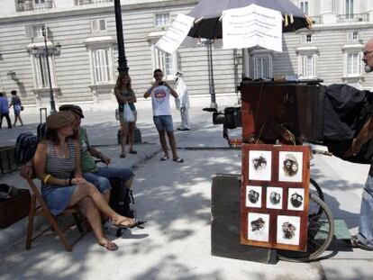 Pascual Miralles lleva 15 años realizando retratos en el centro de la capital con un aparato artesanal. Esta práctica, de origen y futuro cada vez más inciertos, sobrevive gracias a unos pocos románticos