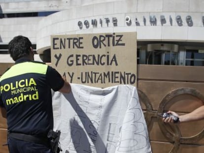 Veinte personas se plantan frente a la sede de la Gerencia de Urbanismo contra el derrumbe de una casa en la calle Ofelia Nieto