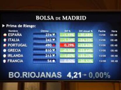 La prima de riesgo de España cae a 261 puntos básicos en la apertura