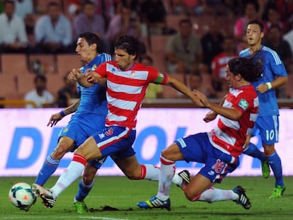 El argentino equilibra al Madrid, que vence en Granada con otro gol de Benzema, buen juego al inicio y apuros al final Özil se fue con el gesto torcido tras ser relevado y Casillas, suplente