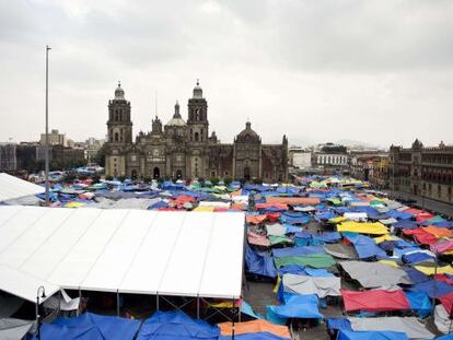 Los docentes mantienen una acampada en el Zócalo de la capital donde el opositor iba a manifestarse contra la reforma energética