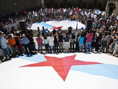 Preferentistas, emigrantes, parados y un afectado por el incendio de O Pindo toman la palabra contra "el neocentralismo" en la manifestación celebrada este domingo en Santiago