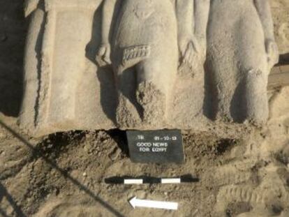 La figura, que data de la XIX dinastía, mide 1,95 metros de largo por 1,60 de ancho y es de granito rojo