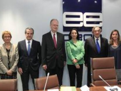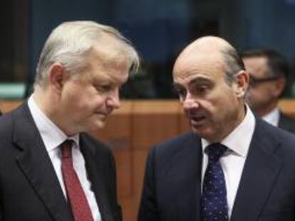 El presidente del Eurogrupo, Jeroen Dijsselbloem, y el comisario de Economía de la UE, Olli Rehn, comparecen ante la prensa tras la reunión de los ministros de Finanzas de Europa Luis de Guindos ha pronosticado en Bruselas que España saldrá del rescate económico en enero Señal institucional ofrecida por EBS