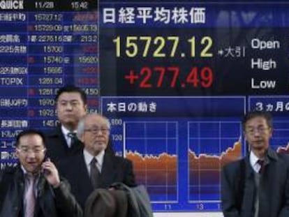 El Nikkei sube 255,30 puntos, un 1,67 por ciento, hasta 15.555,16 unidades
