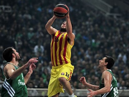 El equipo azulgrana vence en Atenas y sigue invicto en el Top 16 tras un partido con un juego muy espeso y bajo mínimos (56-63)
