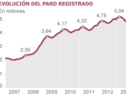 Los datos de paro registrado reflejan que el deterioro laboral continúa, aunque a menor ritmo El número de desempleados sube en 113.097 y supera de nuevo los 4,8 millones El Ministerio destaca que en la Seguridad Social y el Inem es la cifra menos mala desde 2007
