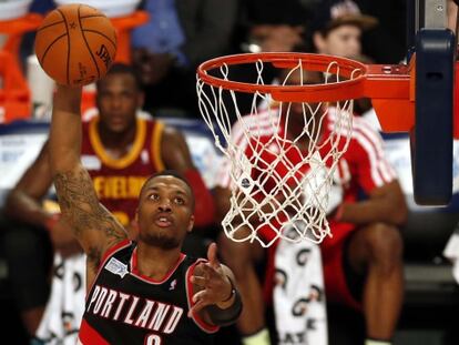 El base de Portland gana y anota 13 puntos en el primero de los cinco eventos que disputará en el All Star / El partido de las Promesas es animado por el pique Waiters-Hardaway y el récord de 25 rebotes de Drummond, elegido MVP