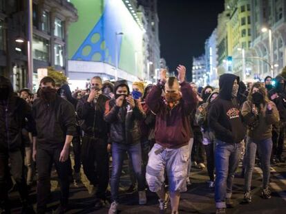 Un grupo de 100 manifestantes corta Gran Vía durante una hora Los antidisturbios dispersan a los concentrados en la arteria madrileña con varias cargas