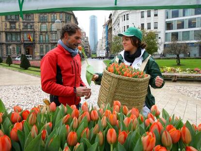 La eléctrica reparte flores en Bilbao para simbolizar “entusiasmo, felicidad y buena energía"