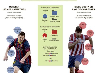 Barcelona y Atlético buscan romper las tres igualadas de este curso en un duelo marcado por la duda de Diego Costa, con problemas físicos, y el gran momento realizador de Messi