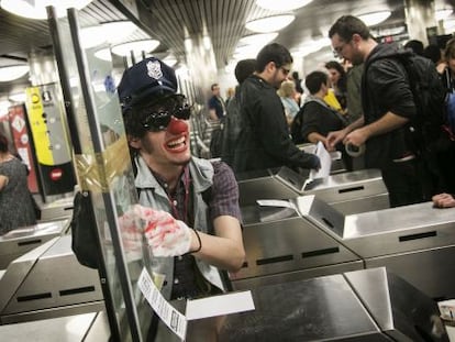 El colectivo Stop Subidas ocupa el vestíbulo de la estación del metro de Sagrera