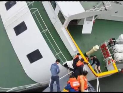 Nuevas imágenes difundidas este lunes le muestran a él y su tripulación abandonando el barco que naufragó hace una semana en aguas surcoreanas