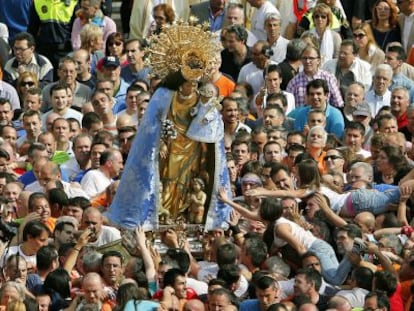 Multitudinario traslado de la imagen de la virgen, recién restaurada por el Instituto Valenciano de Conservación
