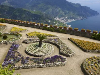 El pabellón del músico es un encaje de piedra, muy acotado por las hortensias y crisantemos