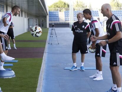 El colombiano, de 23 años, se ejercitó en Valdebebas junto a Benzema y Varane, en su primera sesión de trabajo con el conjunto blanco
