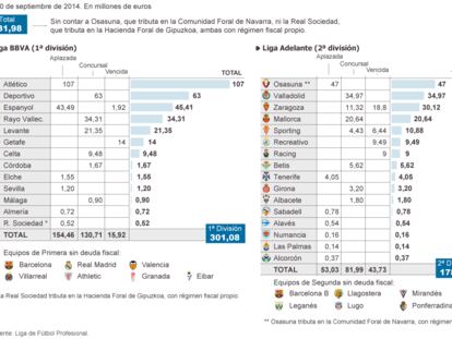 Cantidades reclamadas por la Agencia Tributaria a los equipos españoles