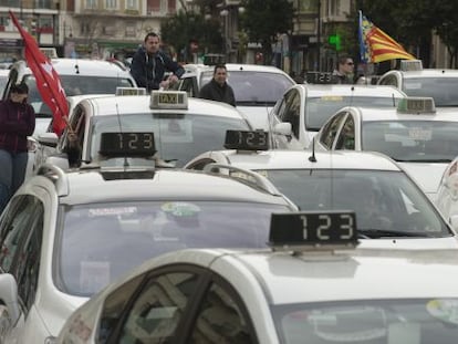 Los conductores realizan una marcha siguiendo una pancarta con el lema "Basta ya de corrupción"
