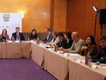 El candidato a diputado general de Bizkaia, Unai Rementeria, y el candidato a alcalde de Bilbao, Juan María Aburto, han presentado sus propuestas a una veintena de alcaldes y candidatos