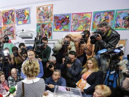La candidata de Ahora Madrid vota a primera hora en el distrito de Hortaleza