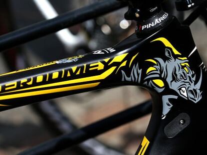 El líder del Tour, embajador de la lucha contra la extinción de los animales, no se olvida de sus orígenes y estrena dibujo en la bici