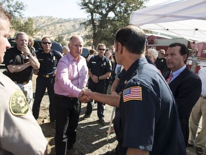 El gobernador Brown visita uno de los focos de los incendios que sufre el Estado