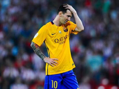 San Mamés vive una noche inolvidable, con tres goles de Aduriz, y los rojiblancos golean (4-0) a un conjunto azulgrana que ve alejarse el sueño del sextete