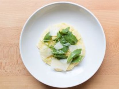 Si le pones vegetales y cítricos para darle un punto de frescor, la polenta puede ser perfectamente un plato de verano. Lo del parmesano es menos de temporada, pero es imposible negarse a sus encantos.