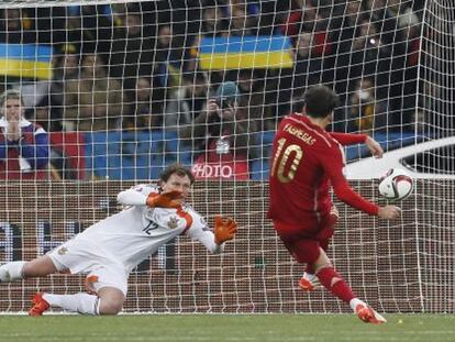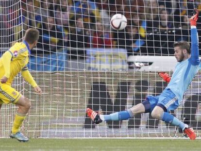 El meta, con una estelar actuación en Kiev, y un gol del debutante Mario, mandan a Ucrania a la repesca