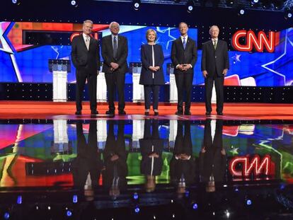 Aunque los candidatos demócratas sean cinco, la campaña es cosa de dos: Clinton y Sanders