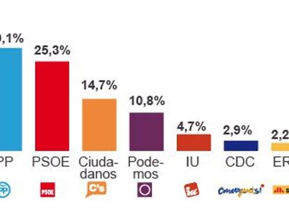 El último barómetro de la legislatura otorga al PP un 29,1% de los votos y mantiene al PSOE como segunda fuerza, con un 25,3%. Ciudadanos logra un 14,7% y Podemos cae al 10,8%
