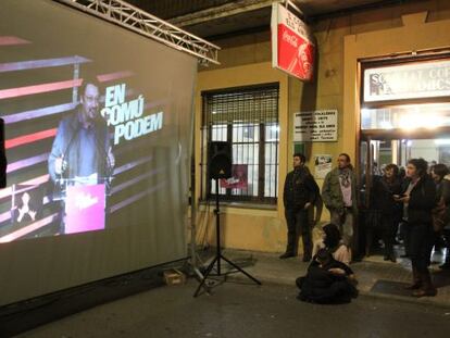 Xavier Domènech, candidato de En Comú Podem, augura la victoria en un mitin en Terrassa